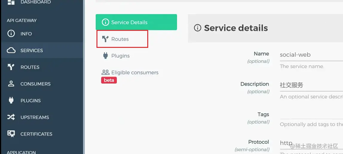 - kong网关根据客户端传过来的服务名匹配到对应的Routes,再根据Routes找到对应的Service details