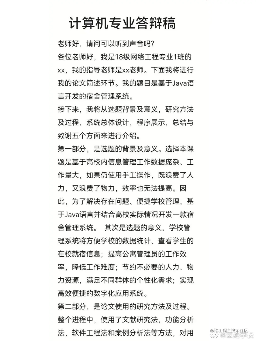 各位老师好,我是18级网络工程专业1班的xx,我的指导老师是xx老师。下面我将进行我的论文简述环节。我的题目是基于Java语言开发的宿舍管理系统。