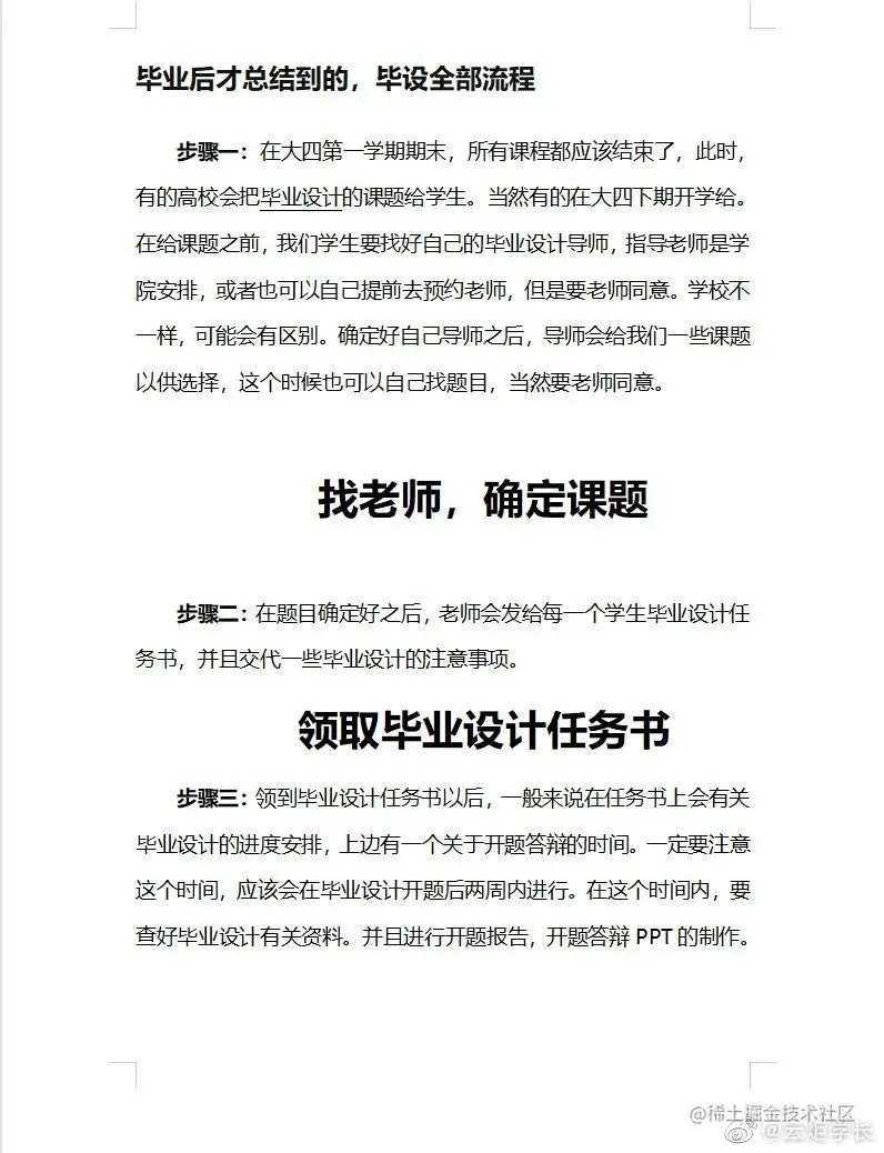 步骤一:在大四第一学期期末,所有课程都应该结束了,此时,有的高校会把毕业设计的课题给学生。当然有的在大四下期开学给。在给课题之前,我们学生要找好自己的毕业设计导师,指导老师是学院安排,或者也可以自己提前去预约老师,但是要老师同意。学校不一样,可能会有区别。确定好自己导师之后,导师会给我们一些课题以供选择,这个时候也可以自己找题目,当然要老师同意。