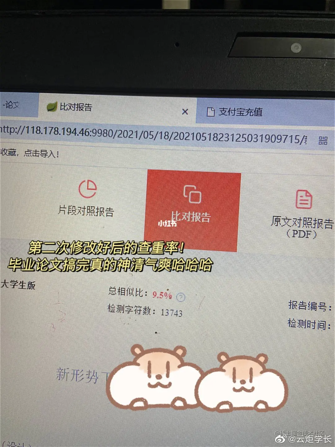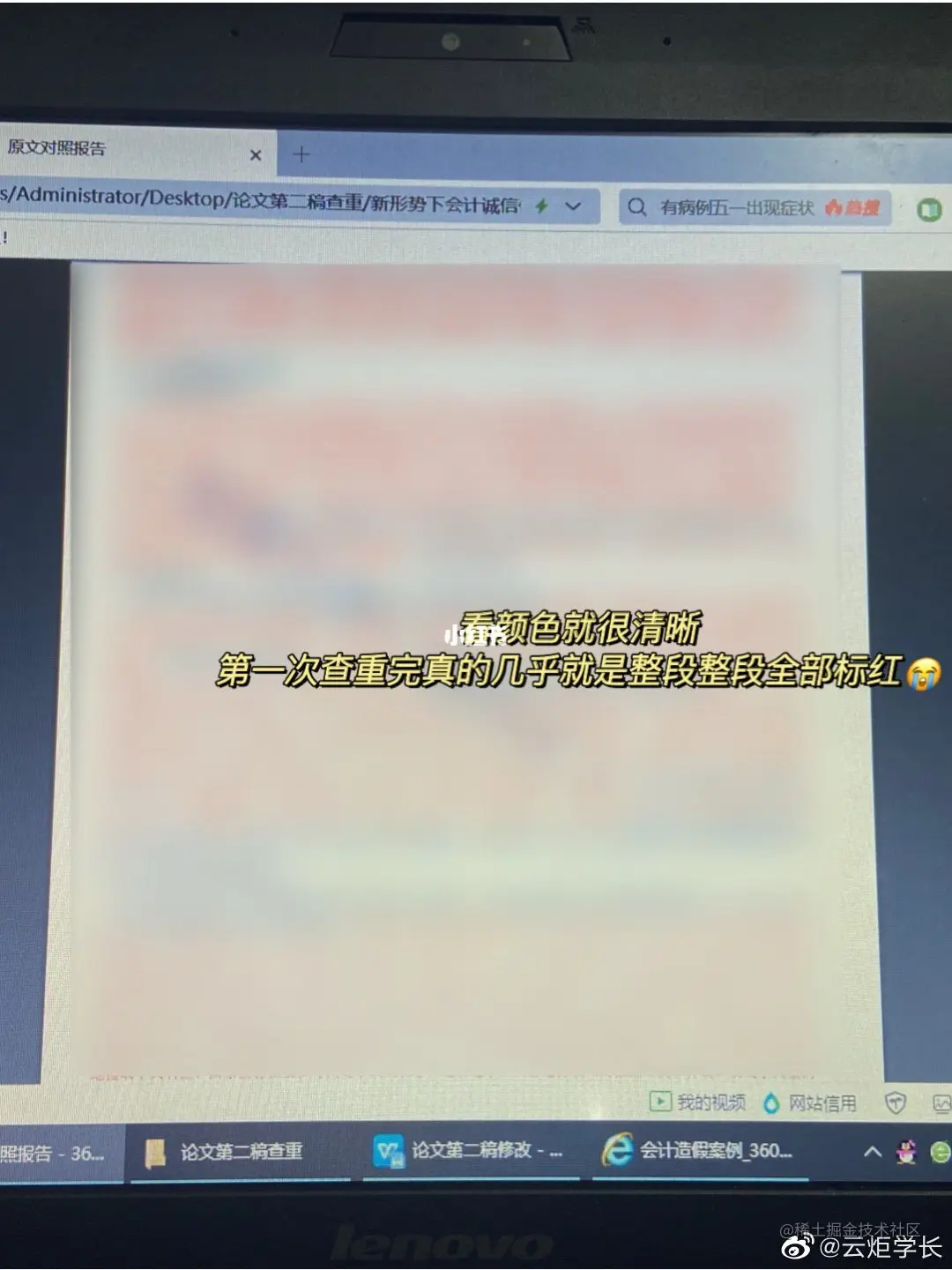 这应该是万千学子的噩梦了吧哈哈哈,论文降重那几天就一直在微博上面看到各种吐槽,好笑又心酸哈哈哈哈!前面讲到就因为初稿时偷了懒然后第一次查重73%,虽然知道自己确实都是复制粘贴的,但是看到这个数字的时候我还是傻眼了,满屏的红根本不知道从何下手去改!