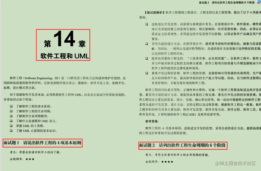 第14章软件工程和UML本章讲解了软件工程的基本原则、生命周期、建模、UML语言、UML的5类图和用例的相关知识。对于高级软件开发者来说,必须熟悉软件工程和UML,这也是在面试中经常涉及到的。