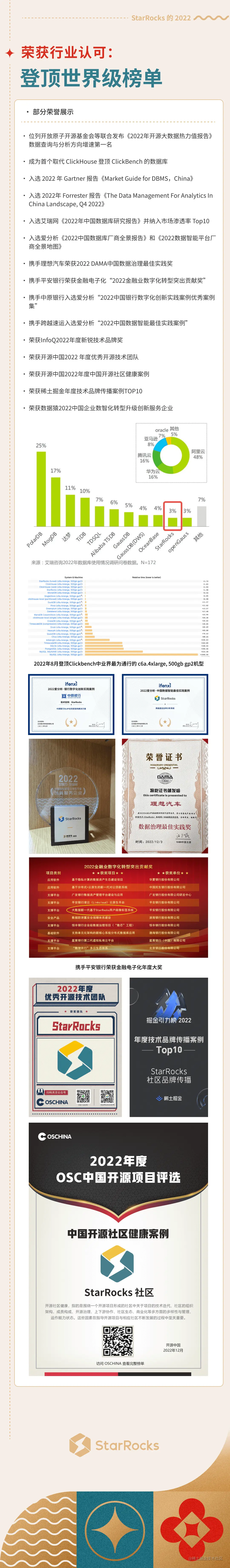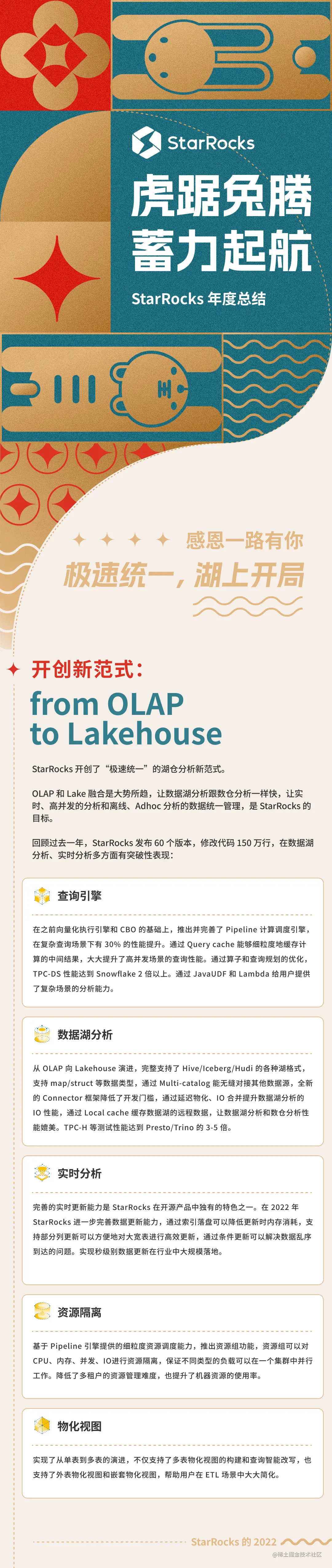 值此送虎迎兔的新春佳节之际,感恩与StarRocks一路同行的用户和开发者们,同时也借此机会,来一起回顾过去的一年,我们一同为各行各业提升全面数字化经营能力,创造降本增效的业务价值,开创数据分析新范式,构建引领行业的新标准。