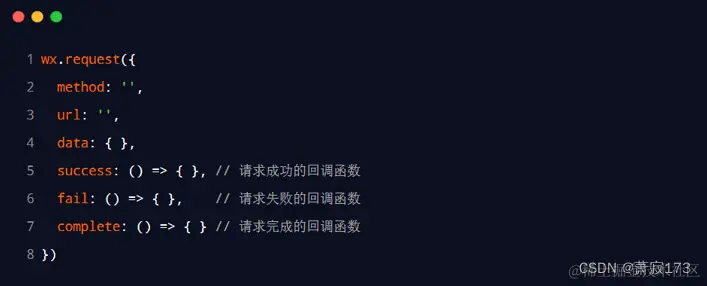 默认情况下,小程序官方提供的异步 API 都是基于回调函数实现的,例如,网络请求的 API 需要按照如下的方式调用: