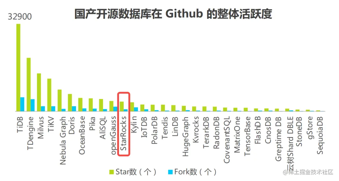 此外,报告还对国产开源数据库在Github的整体活跃度做了调研,StarRocks作为仅仅面世3年的产品,整体社区活跃度已经在众多开源数据库中位于前列。