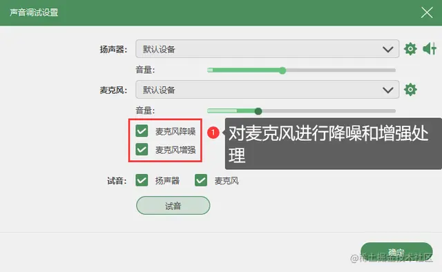 备注:如何录制清晰的录音文件?使用麦克风时,点击【视频录制】页面右上角的【声音设置】对麦克风进行降噪和增强处理。可以减少声音的底噪,让录音效果更佳。