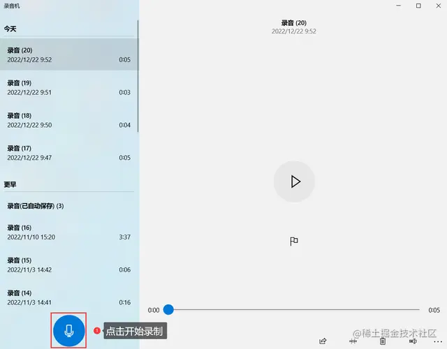 跟手机一样,电脑也有自带的录音软件,即电脑的“录音机”。那如何找到电脑自带的录音机呢?您只需在电脑左下角的搜索框中输入“录音机”,就可以找到。接着打开录音机,然后点击【开始录制】按钮,就可以录制声音。需要说明的是:使用自带录音机录制的声音会有底噪。想要录制清晰的声音,可以使用专业的录音软件。