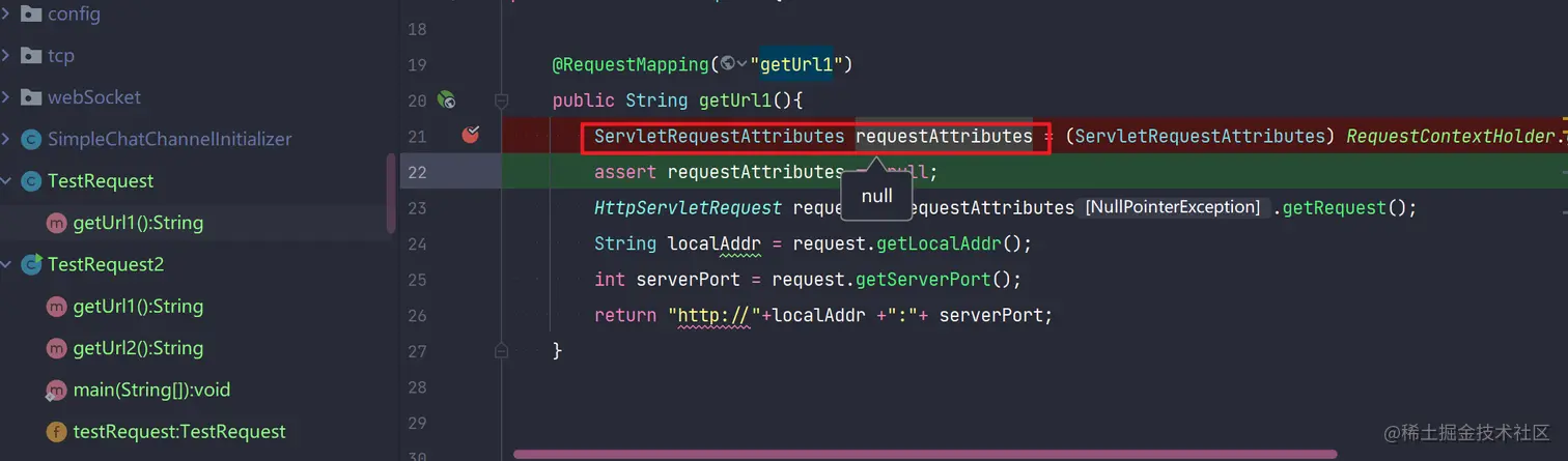 ServletRequestAttributes requestAttributes = (ServletRequestAttributes) RequestContextHolder.getRequestAttributes();