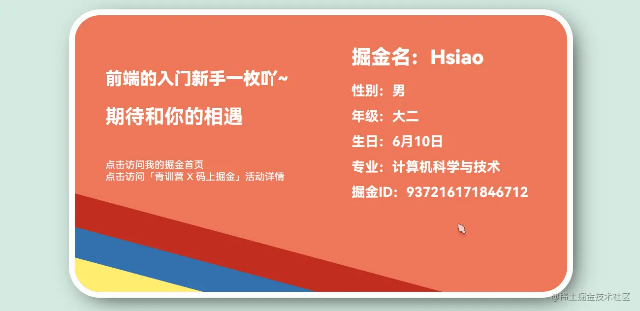 当青训营遇上码上掘金,我的选题为: “主题 1:我的名片”