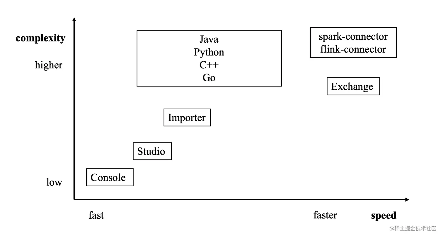 想必通过上面的内容大家对 NebulaGraph Exchange 的数据导入性能有了一定的了解,下图为 NebulaGraph 数据导入工具的分布图: