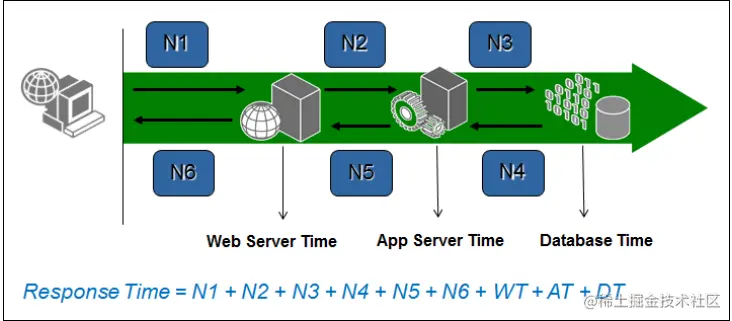 定义和解释: 响应时间,简称RT。是指系统对请求作出响应的时间,可以理解为是指用户从客户端发起一个请求开始,到客户端接收到从服务器端返回的响应结束,整个过程所耗费的时间。直观上看,这个指标与人对软件性能的主观感受是非常一致的,因为它完整地记录了整个计算机系统处理请求的时间。