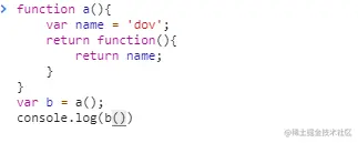 在这段代码中,a()中的返回值是一个匿名函数,这个函数在a()作用域内部,所以它可以获取a()作用域下变量name的值,将这个值作为返回值赋给全局作用域下的变量b,实现了在全局变量下获取到局部变量中的变量的值.