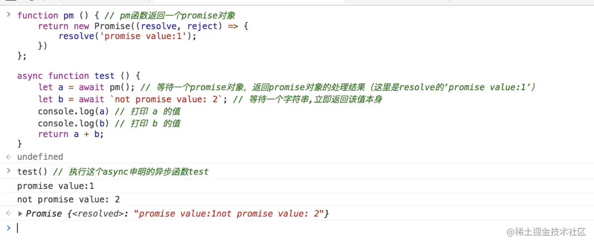 返回值:返回 Promise 对象的处理结果。如果等待的不是 Promise 对象,则返回该值本身。