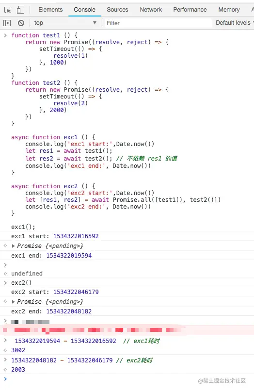 你可以在浏览器的Console里尝试一下,会发现exc2的用Promise.all执行更快一些