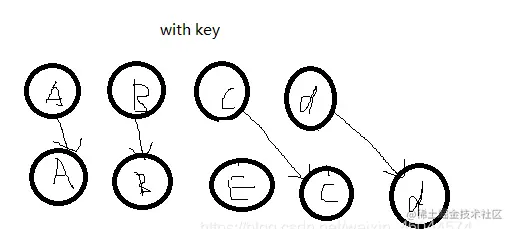 1,无:key属性时,状态默认绑定的是位置;有:key属性时,状态根据key的属性值绑定到了相应的数组元素。