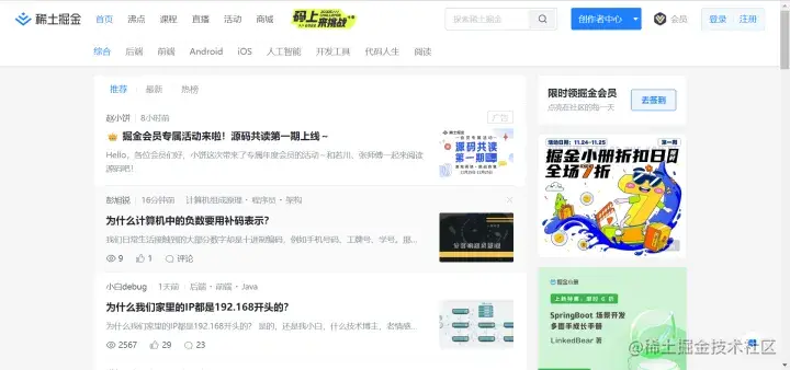 之前的技术站子很多都不再纯粹了,认识的朋友们现在比较爱上掘金。它是面向全球中文开发者的技术内容分享与交流平台,了解行业咨询、同行故事、开发资源。