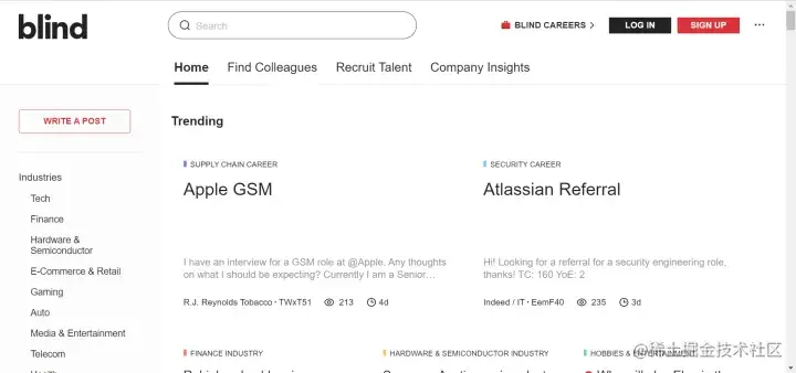 全球知名的职场吐槽网站,英文圈使用较多,一般看看国外大厂鸡毛蒜皮的事,还有一些面试经验分享。
