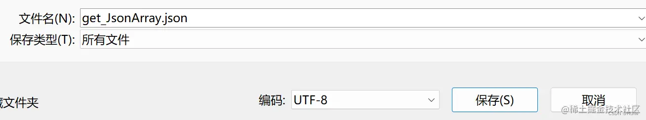 在文件名上加后缀.json,然后点击保存。