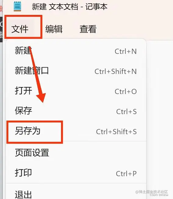 在文本文档中点击文件->另存为