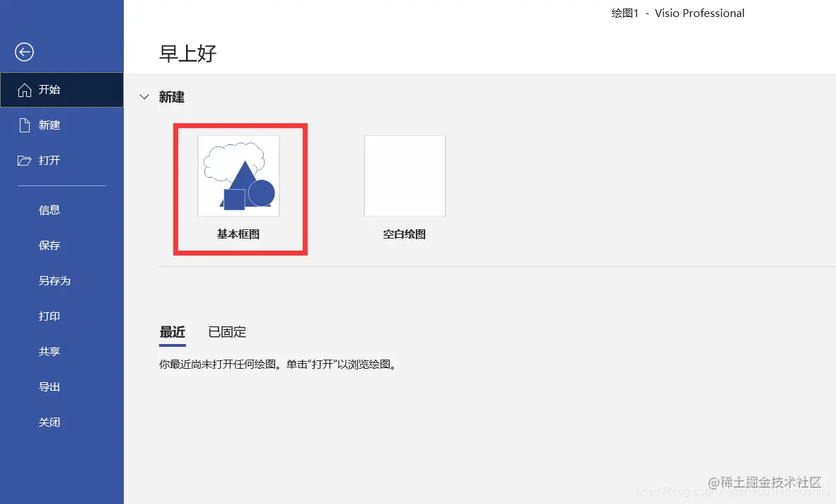 首先打开Visio。我们可以直接选择“基本框图”进行绘制。
