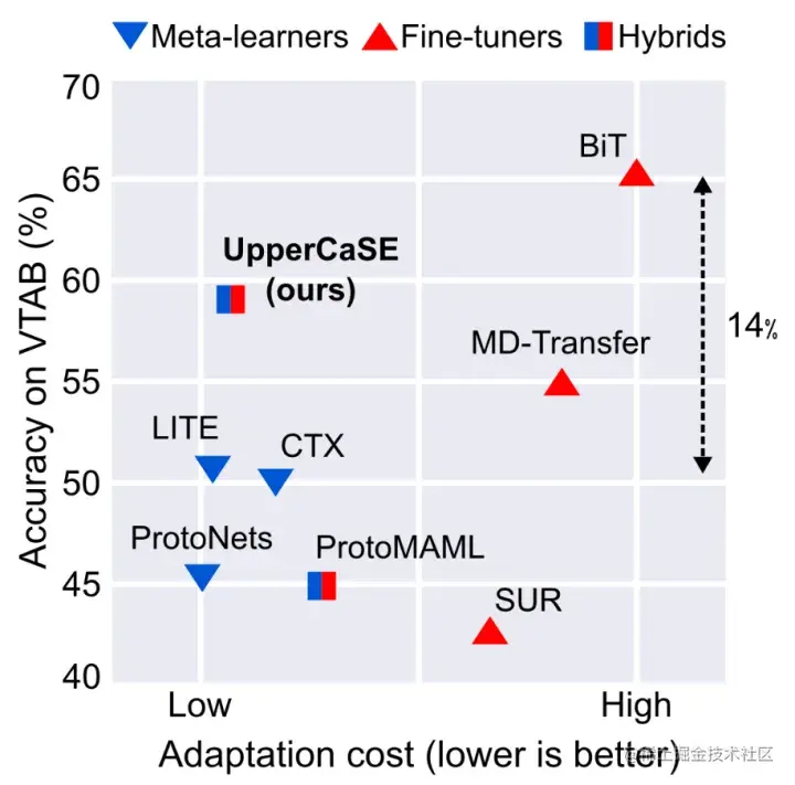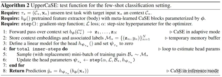 在拥有pretrained特征提取器后,寻找一种快速适应特征提取器的方法是潜在的解决方案。UpperCaSE[9]给出的方案是:用meta-learner在outer-loop中学习特征提取器,用fine-tuner在inner-loop中学习分类头。