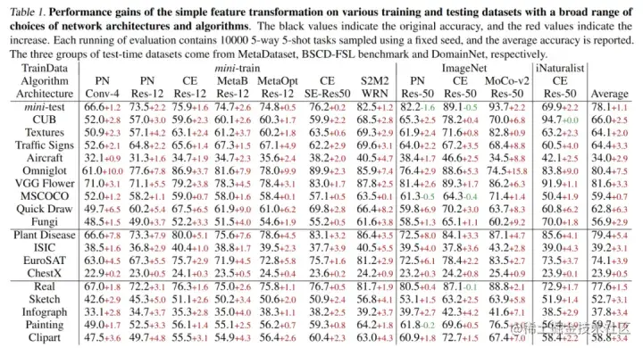基于ResNet-18和更大的跨域问题时,也显示出了迁移学习策略baseline&baseline++的优势(下表)。元学习方法的meta-training阶段是在基类数据进行的,故其learn to learn能力也局限在基类分布内,正如我们看到的,在跨域问题时,在分布外learn to learn能力受到了影响。而baseline是对每个小样本任务重新初始化的分类器,一定程度上减少了分布偏移的影响。虽然baseline++也重新初始化了分类器,但可能是因为额外降低类内差异影响了跨域问题中的适应性,导致baseline++不如baseline(但也比大部分对比的元学习算法好一些)。
