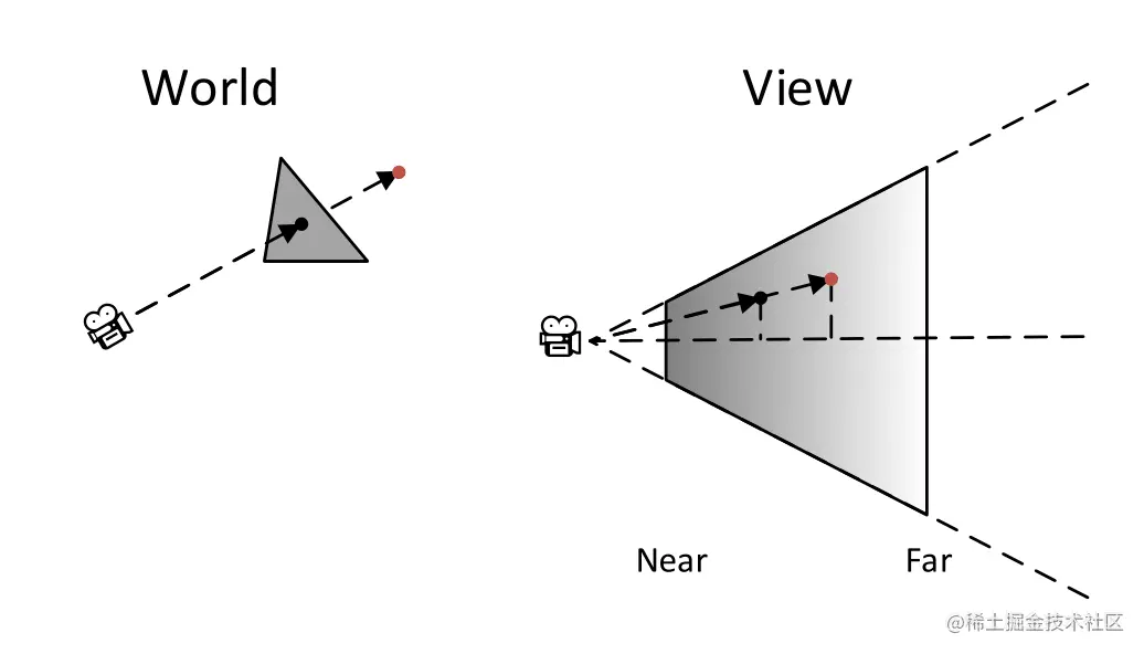 已知在 观察空间 中摄像机的位置 一定 为 (0, 0, 0),所以从摄像机指向远平面上的点的 viewVec 就是其在 观察空间 中的方向。