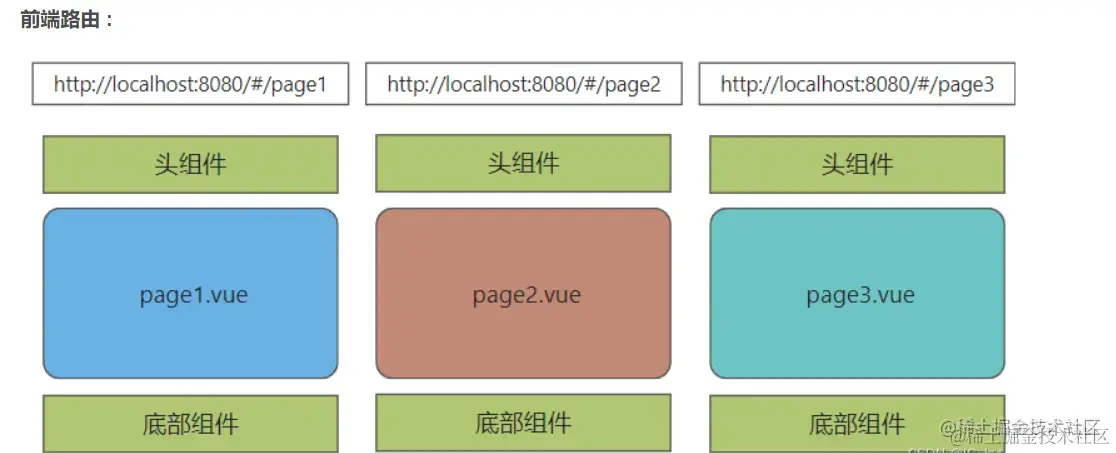 前端路由(单页应用程序): 一个url地址,对应哪个组件