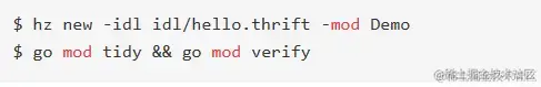 接下来我们使用 hz 生成代码,并整理和拉取依赖