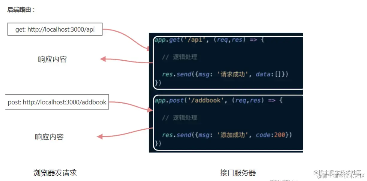 后端路由:一个接口地址,对应哪一段接口地址