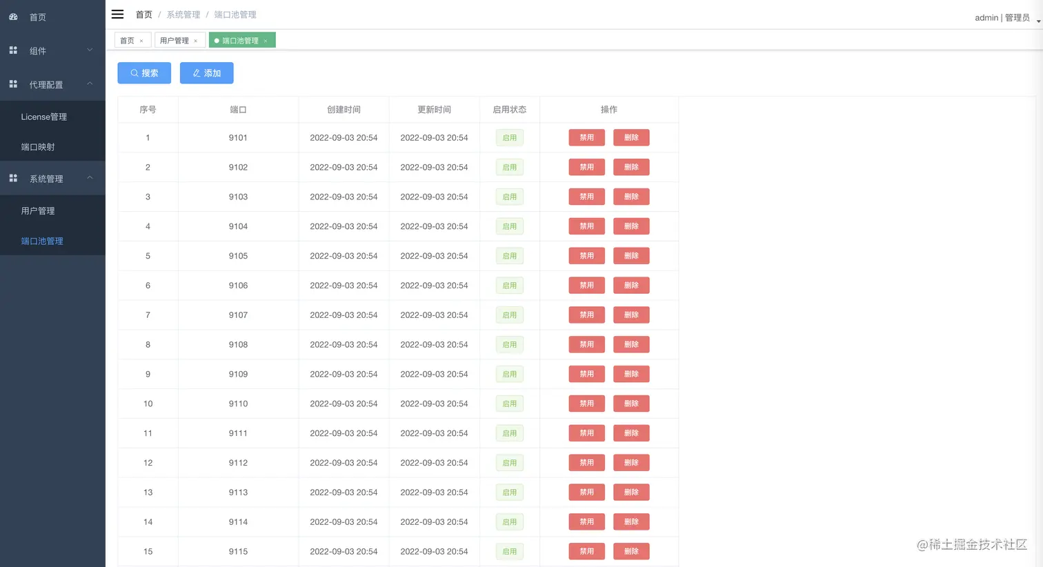 本项目为了简化首次配置,默认初始化数据会将9101~9120的所有端口加入端口池。 可以在服务端项目sql配置(port_pool.data.sql文件)中自行修改初始化数据,也可以运行后在端口池管理页面手动维护。