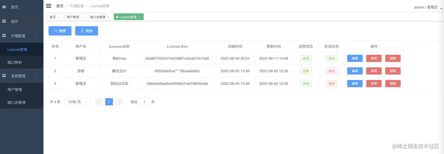 License是客户端连接代理服务端时所需要的唯一合法凭证,一个License同时只能被一个客户端使用。
