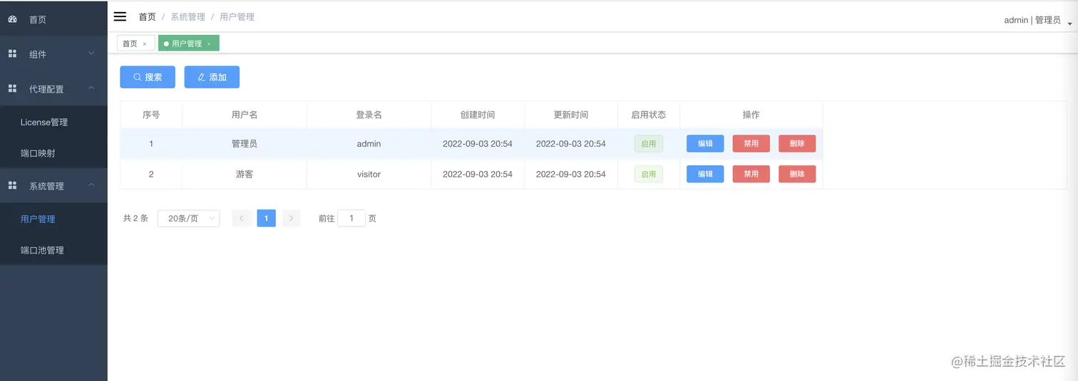 用户是登录管理后台的身份主体,同时也是持有license的身份主体,用于支持代理连接的合法性认证。