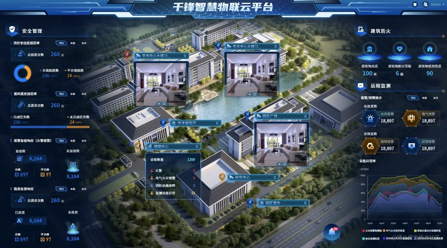 无论是我们的智慧农业,还是智慧汽车,我们都会有一个用Java开发的智慧物联云平台监控大屏,可以对其进行各种监控管理,如下图所示: