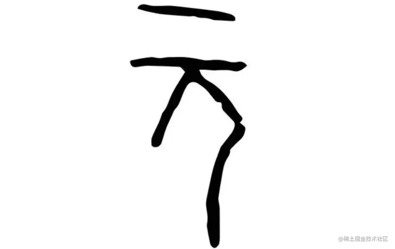 你会发现,“元”这个字有“为首、开头、第一”的含义。那为什么“元”会有这样的意思呢?我们可以分析一下“元”字的甲骨文形式,如下图所示: