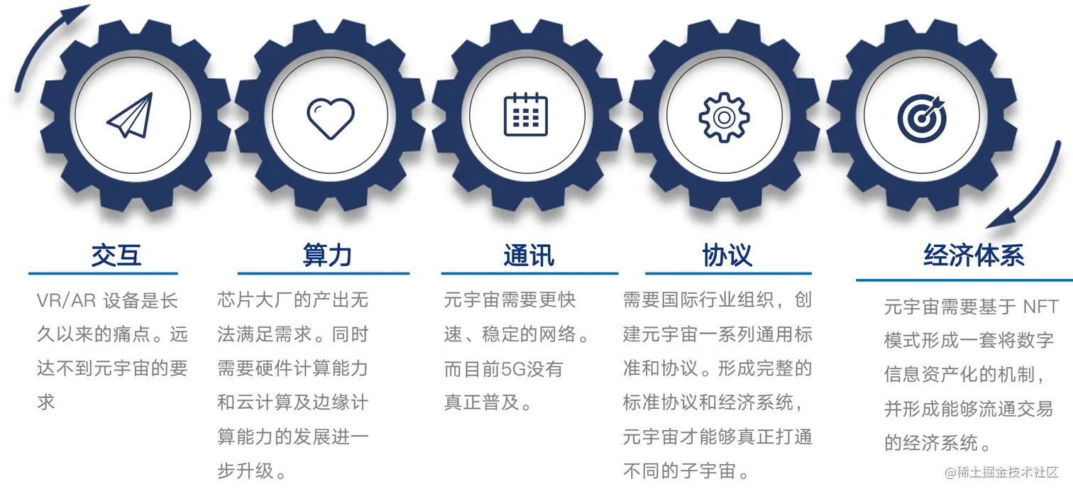 在开发”元宇宙“这个终极目标的过程中,壹哥给大家梳理出了几个比较核心的支撑技术,如下所示: