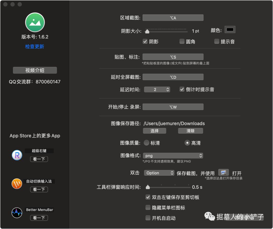 iShot 偏好设置界面如下: