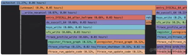 对系统做 profiling 观测后发现有个 cachestat 脚本开启了 ftrace 功能,该脚本是之前同学定位问题部署后没有及时停止,停掉脚本后系统恢复正常。由于 ftrace 不是通过 sysfs 目录打开,查看 sysfs 的 ftrace 其实并无改动。