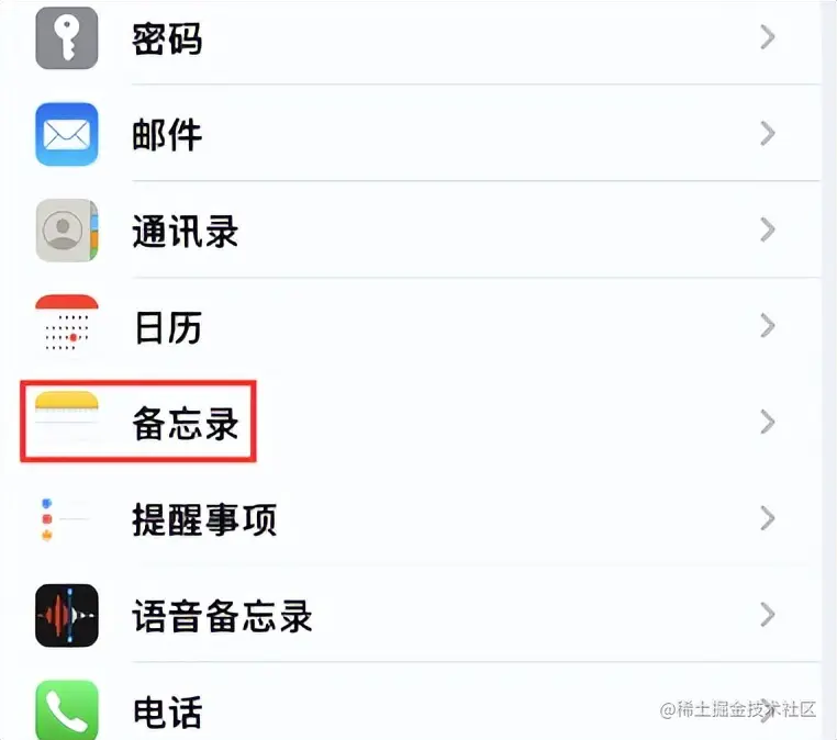 **步骤1:**打开【设置】,找到【备忘录】,点击进入。