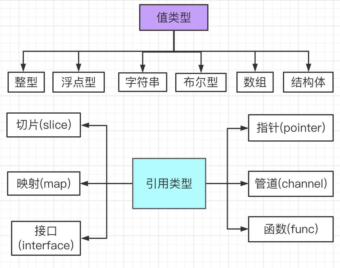 在Go语言中,有基本数据类型(原生数据类型)和复合数据类型(派生数据类型)。