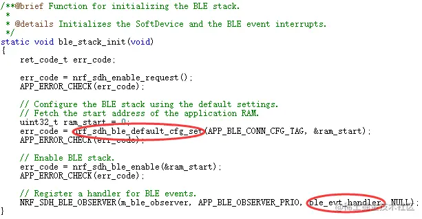ble_stack_init() 协议栈初始化函数基本结构没有变化,设备变化的地方有下面几个地方: