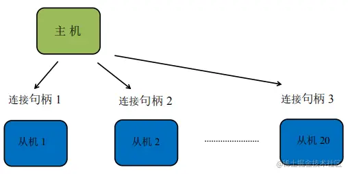 由于蓝牙主机和从机组网,如果不使用 Mesh 的话,只能组微微网。蓝牙5.0的微微网最大可以连接20个从机。