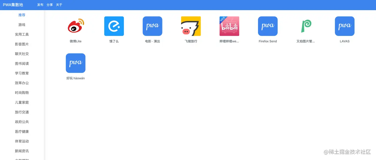PWA 集散地帮助用户发现最好的 PWA 应用。一个私人维护的网站,收录一些比较知名的 PWA APP。