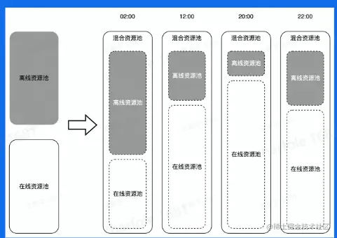 思路:根据在线业务与离线业务的特点,将资源分成两类,从而降低资源的成本。