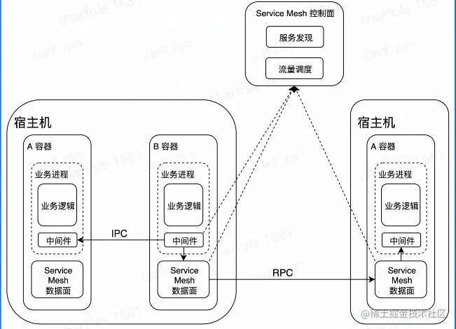思路:将满足亲合性条件的容器调度到一台宿主机、将微服务中间件和服务网格通过共享内存进行通信、服务网格的控制面实施灵活、动态的流量调度。