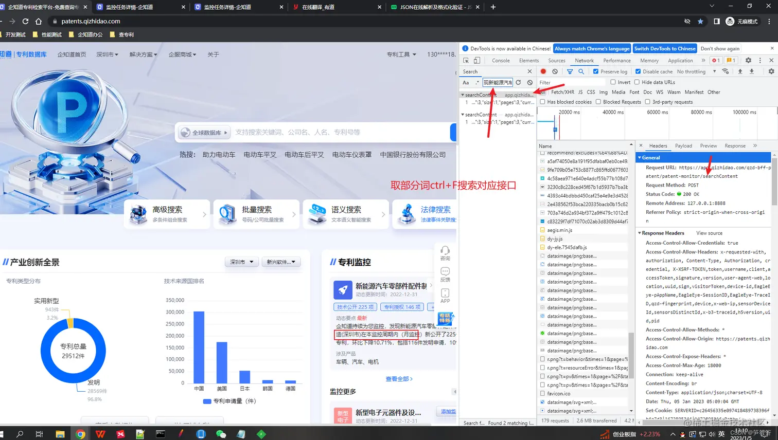 前端渲染部分获取部分关键词,f12中network搜索该词,获取到对应接口名称