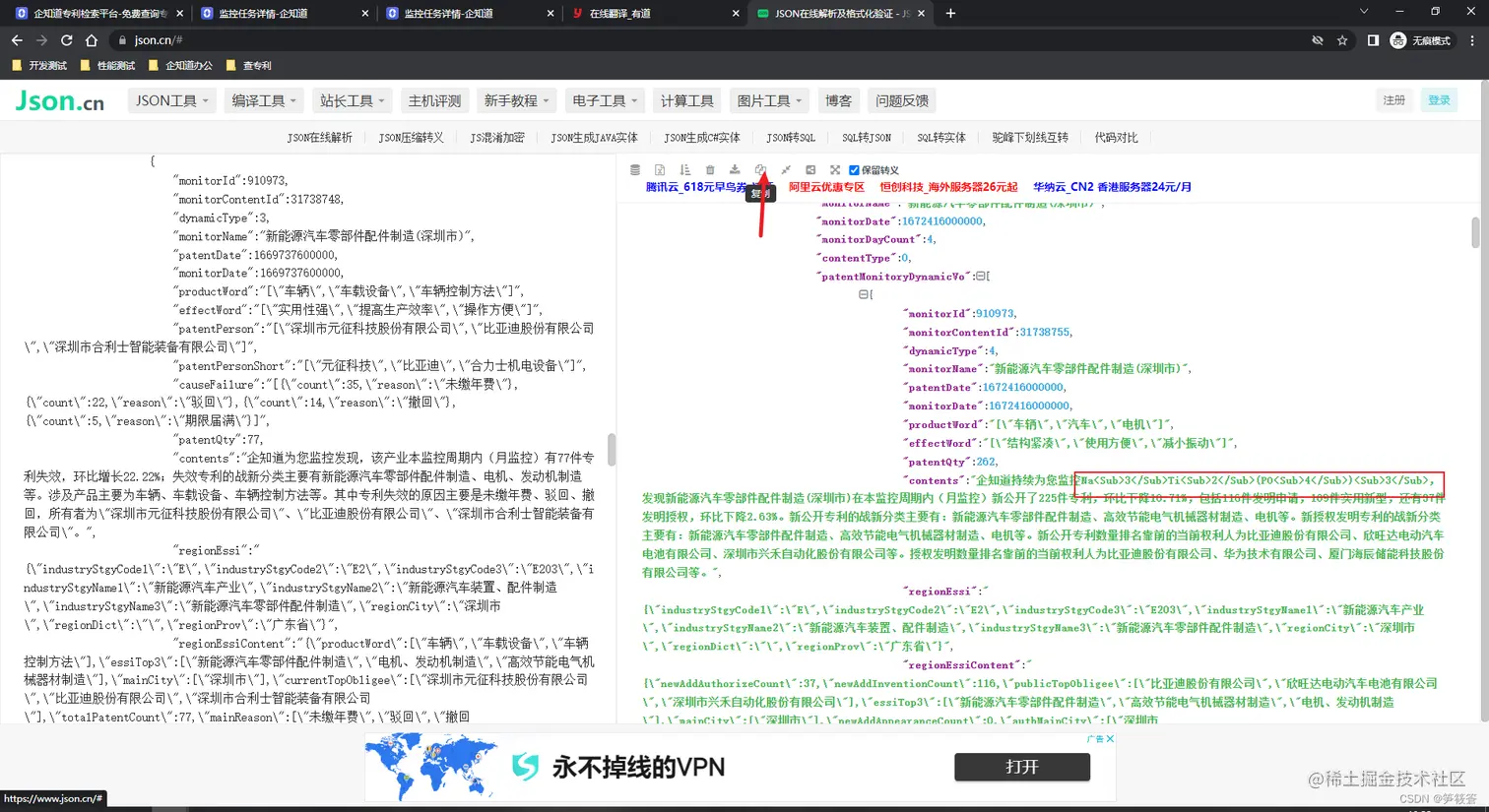 1、为了方便查看json数据,我是复制原始文件中的json数据dao线网站json.cn上修改