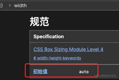 以width属性为例,默认值可以在MDN官方文档中查询到。所有的属性值都有自己的默认值。
