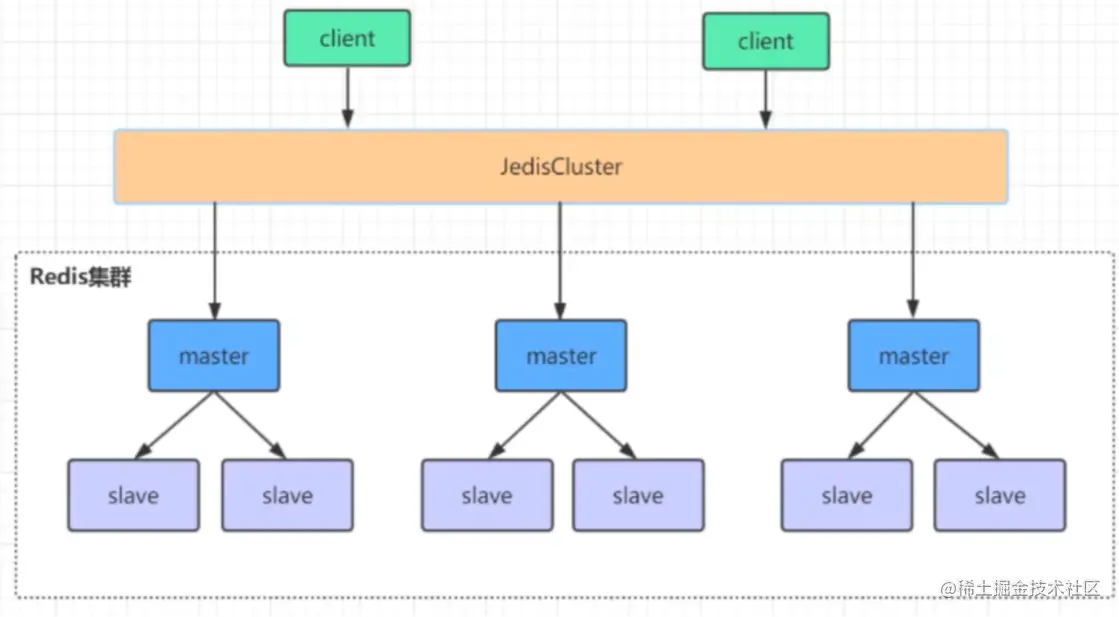 当 Redis Cluster 的客户端来连接集群时,它也会得到一份集群的槽位配置信息并将其缓存在客户端本地。