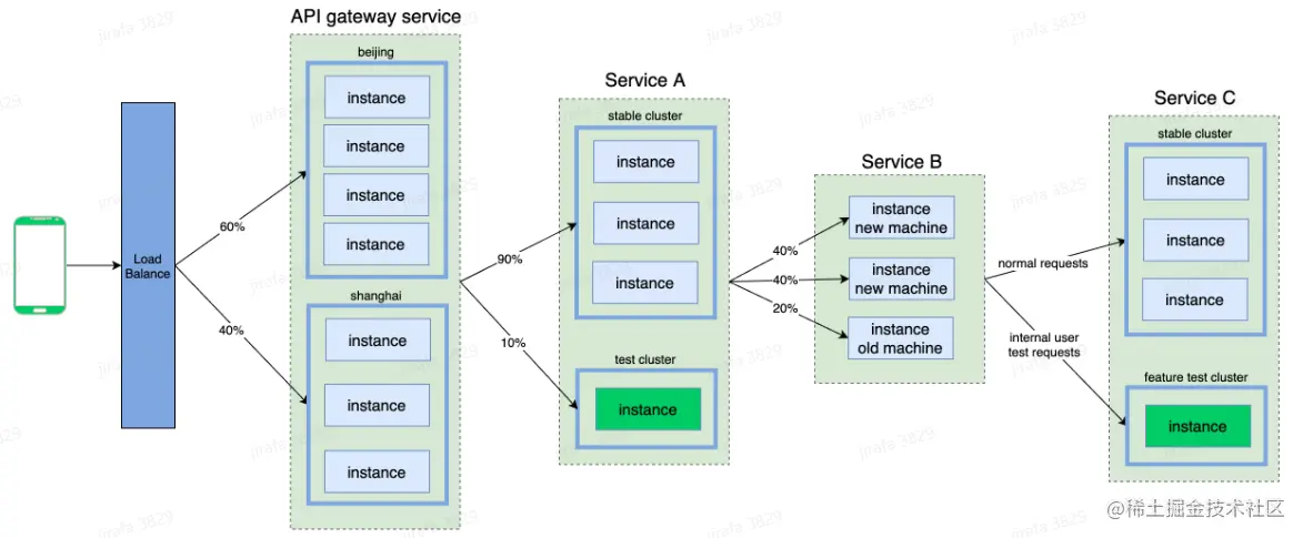 在微服务架构下,我们可以基于地区、集群、实例、请求等维度,对端到端流量的路由路径进行精确控制。